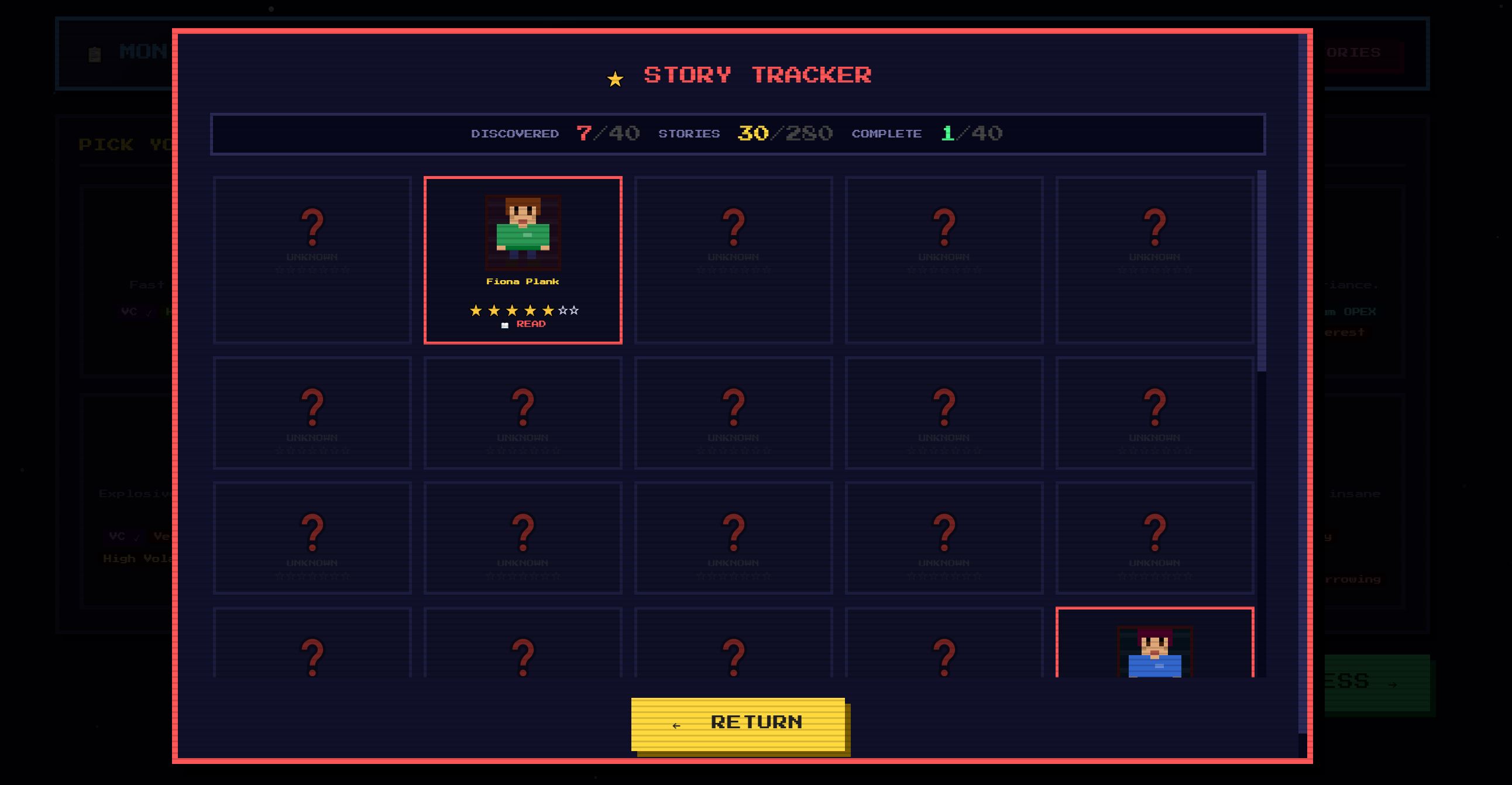 - 40 unique characters, each with 7 stories to unlock. If you really get to read all of their stories, please do have a screenshot and drop us a comment!